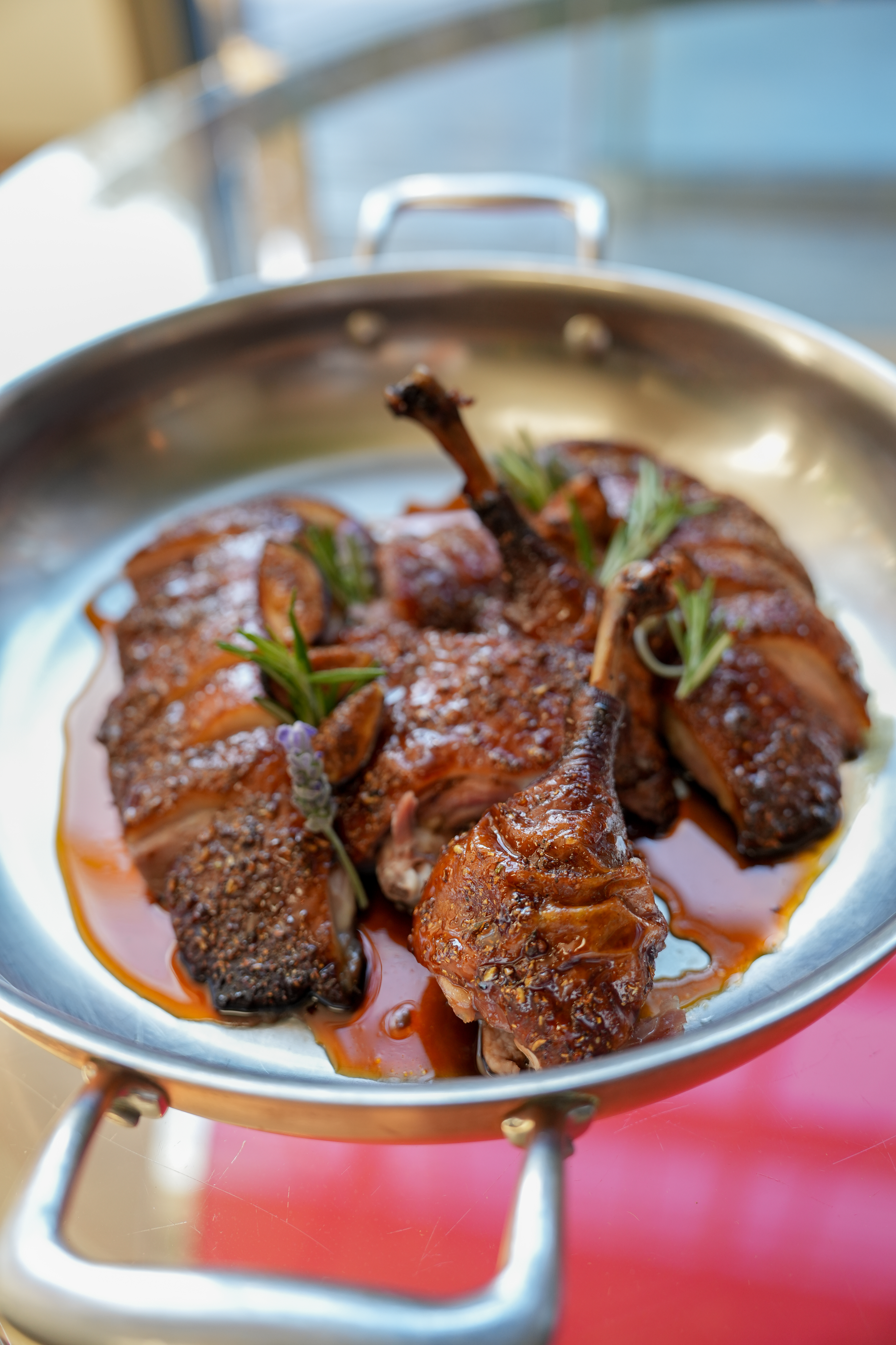 Rohan duck / Spices / Salt / Honey (from rooftop hives) / Vinegar / duck stock